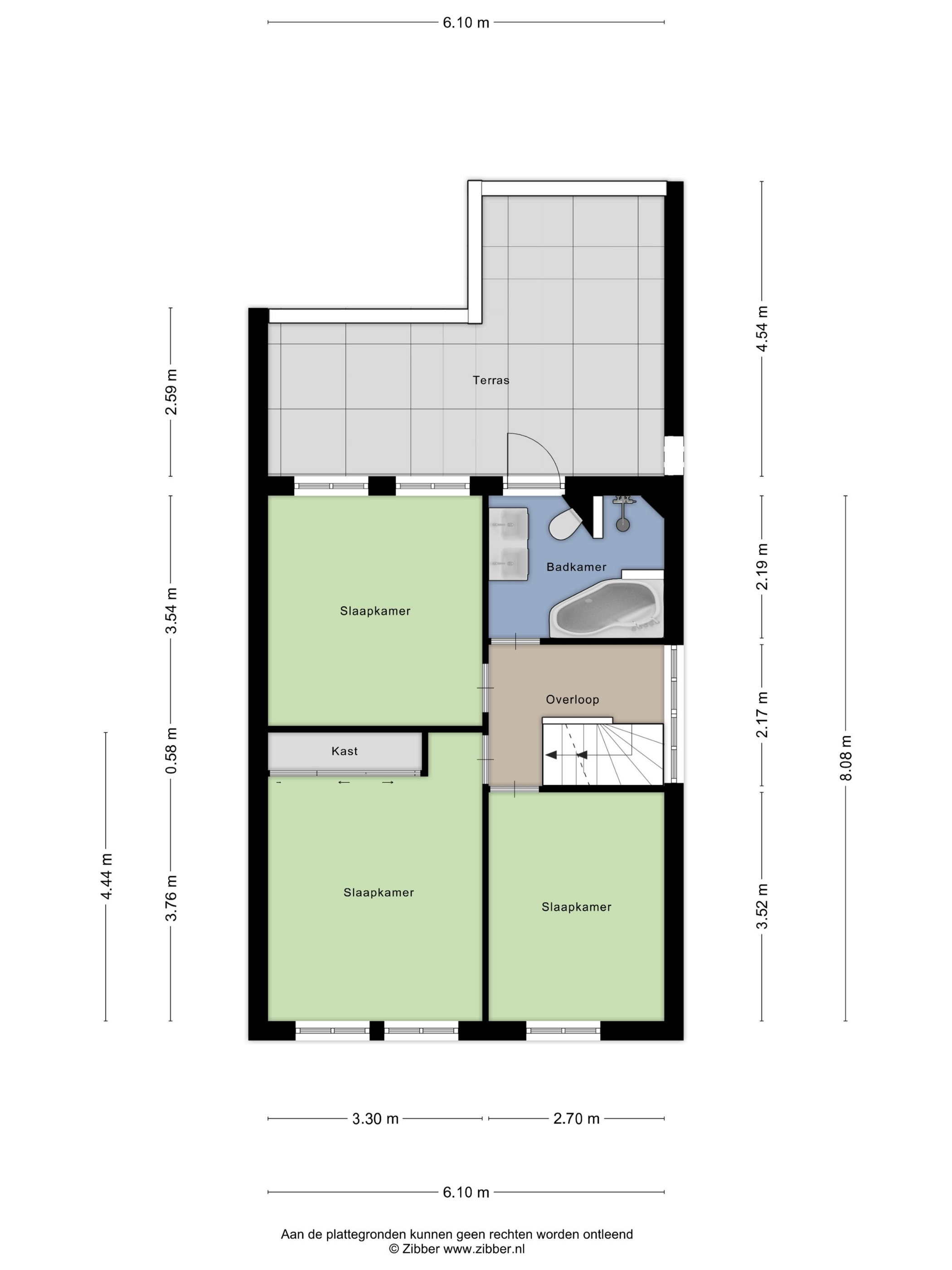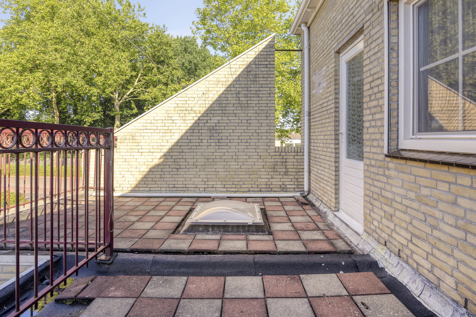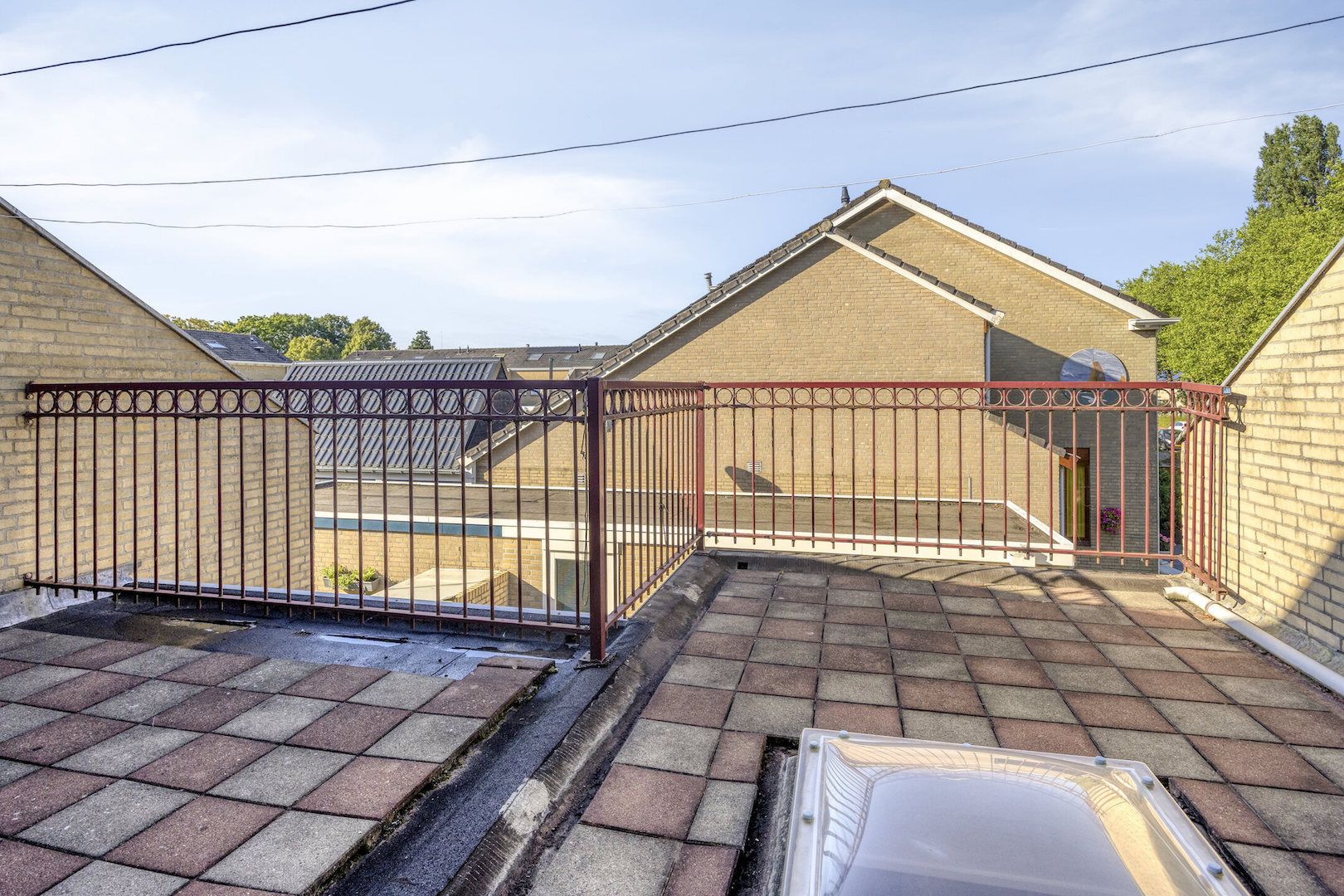 Overloop, badkamer met terrasdeur (sanitair: ligbad, douchegelegenheid, wastafelmeubel, wandtoilet). Slaapkamer I. Ouderslaapkamer II met kastenwand. Slaapkamer III. Dakterras met tegels en hekwerk.