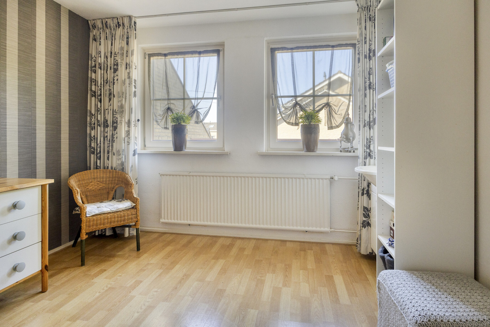Overloop met kastenwand. Slaapkamer IV met dakvenster. Slaapkamer V met dakraam.