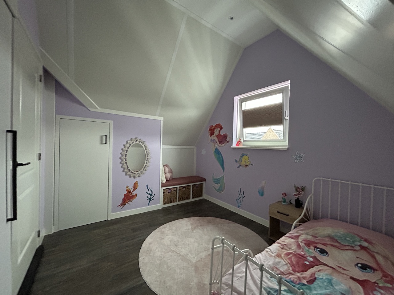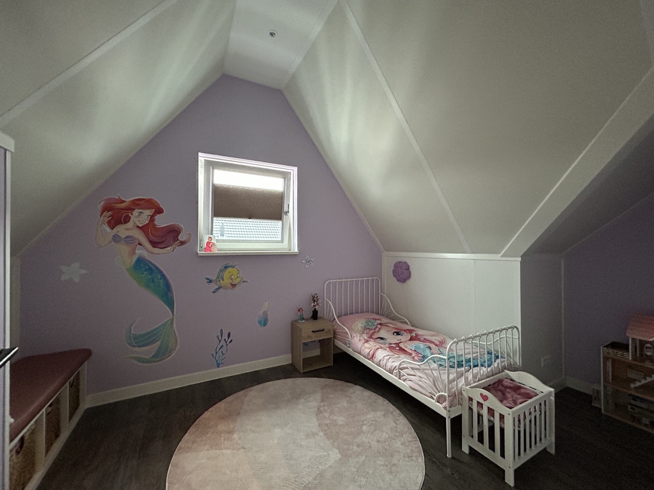 Overloop met wasmachineruimte en extra bergruimte. Slaapkamer IV met kunststof dakraam, vaste kast en bergruimte. Slaapkamer V met raam in de voorgevel en vaste kast. Technische ruimte met CV-combiketel en omvormer voor de zonnepannen.
