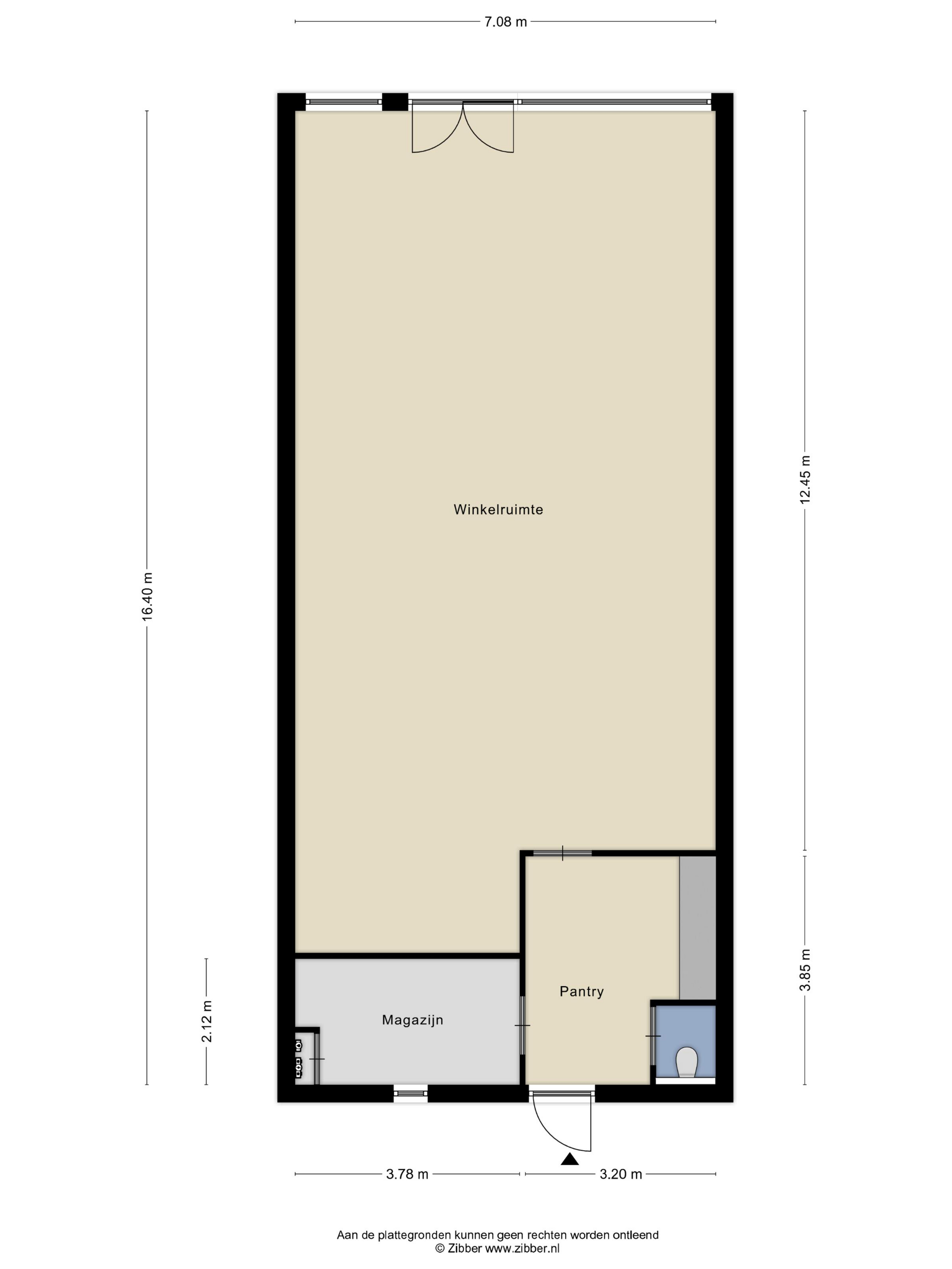 Frontbreedte is ± 7 m1, hoogte onder systeemplafond is ± 2,85 m1, hoogte onder stalen dak is ± 3,70 m1.