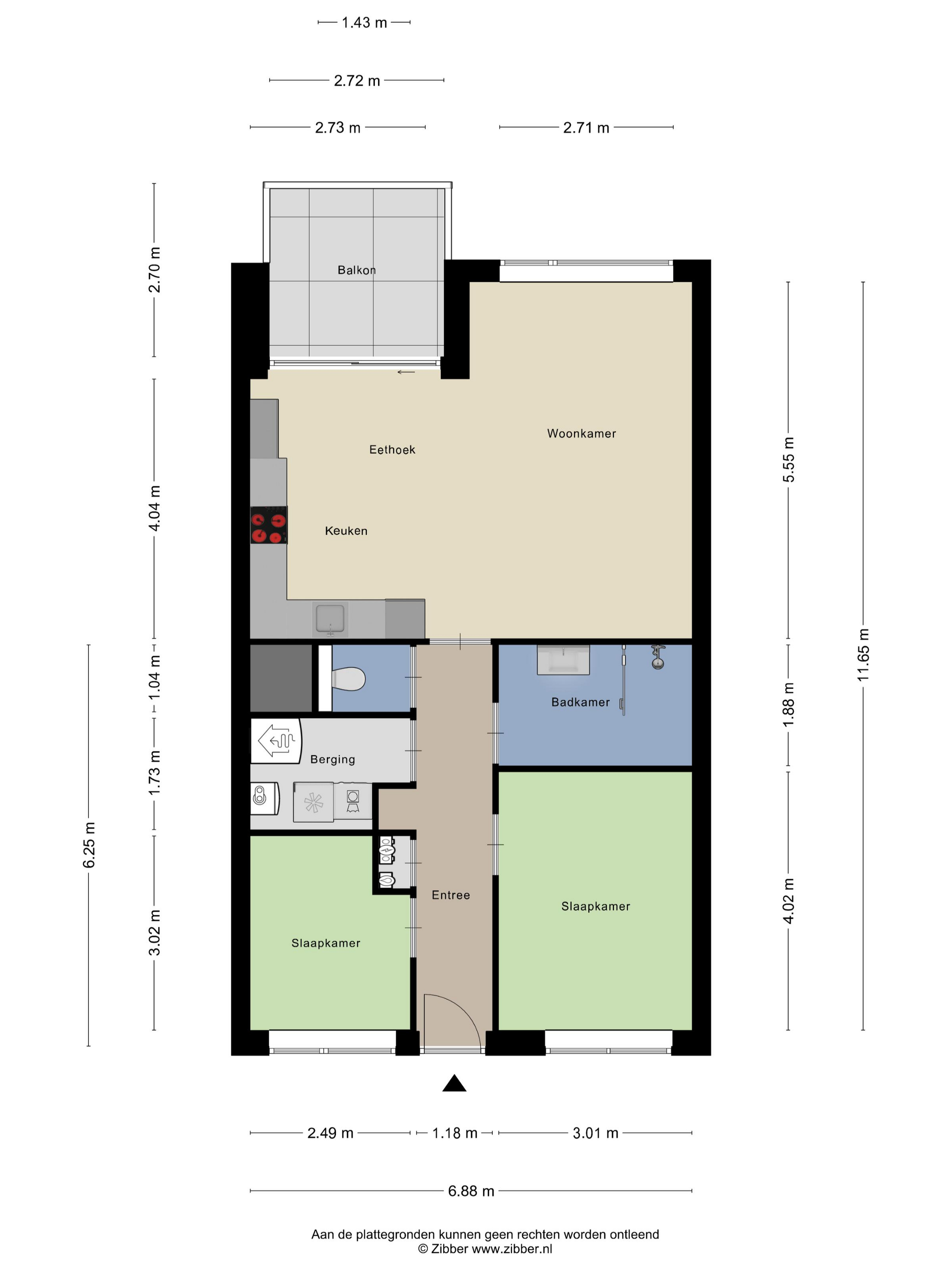 | Aantal kamers | 3 (2 slaapkamers) |