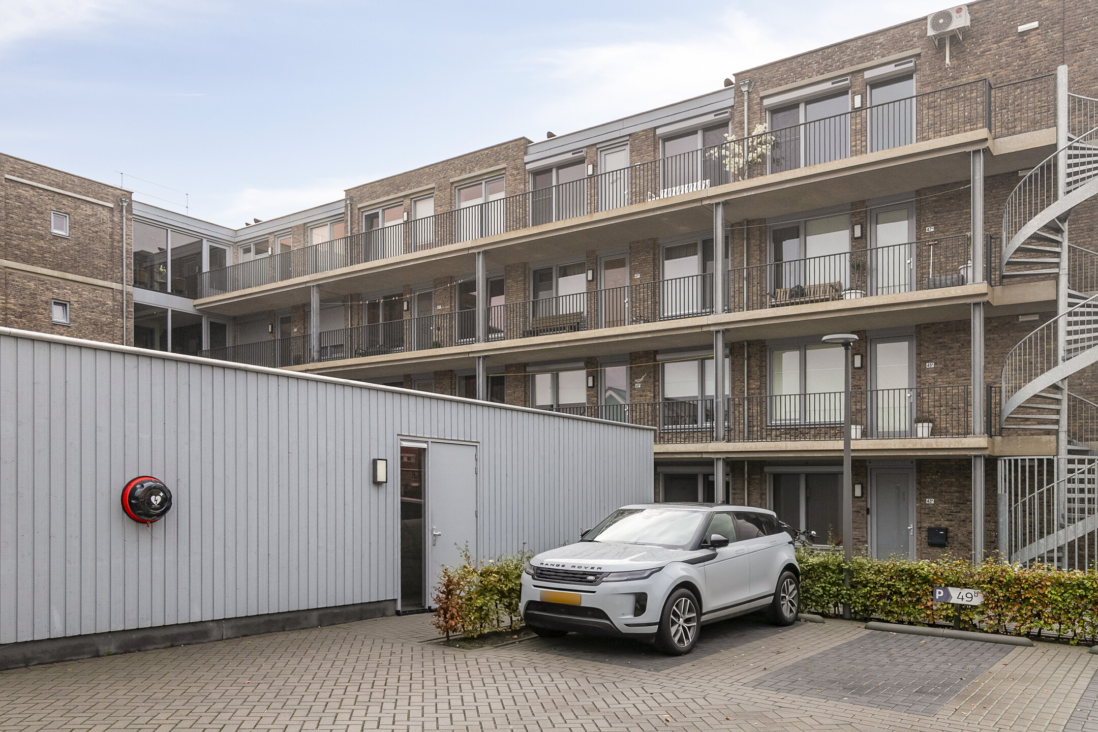 Op het parkeerterrein van het complex gelegen eigen parkeerplaats.